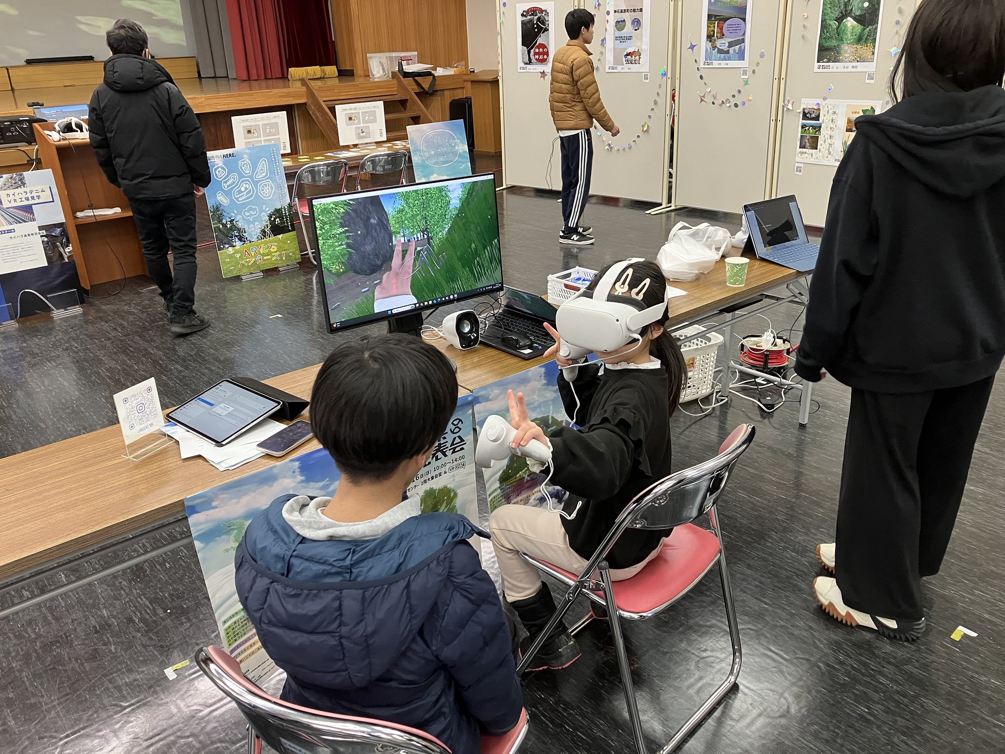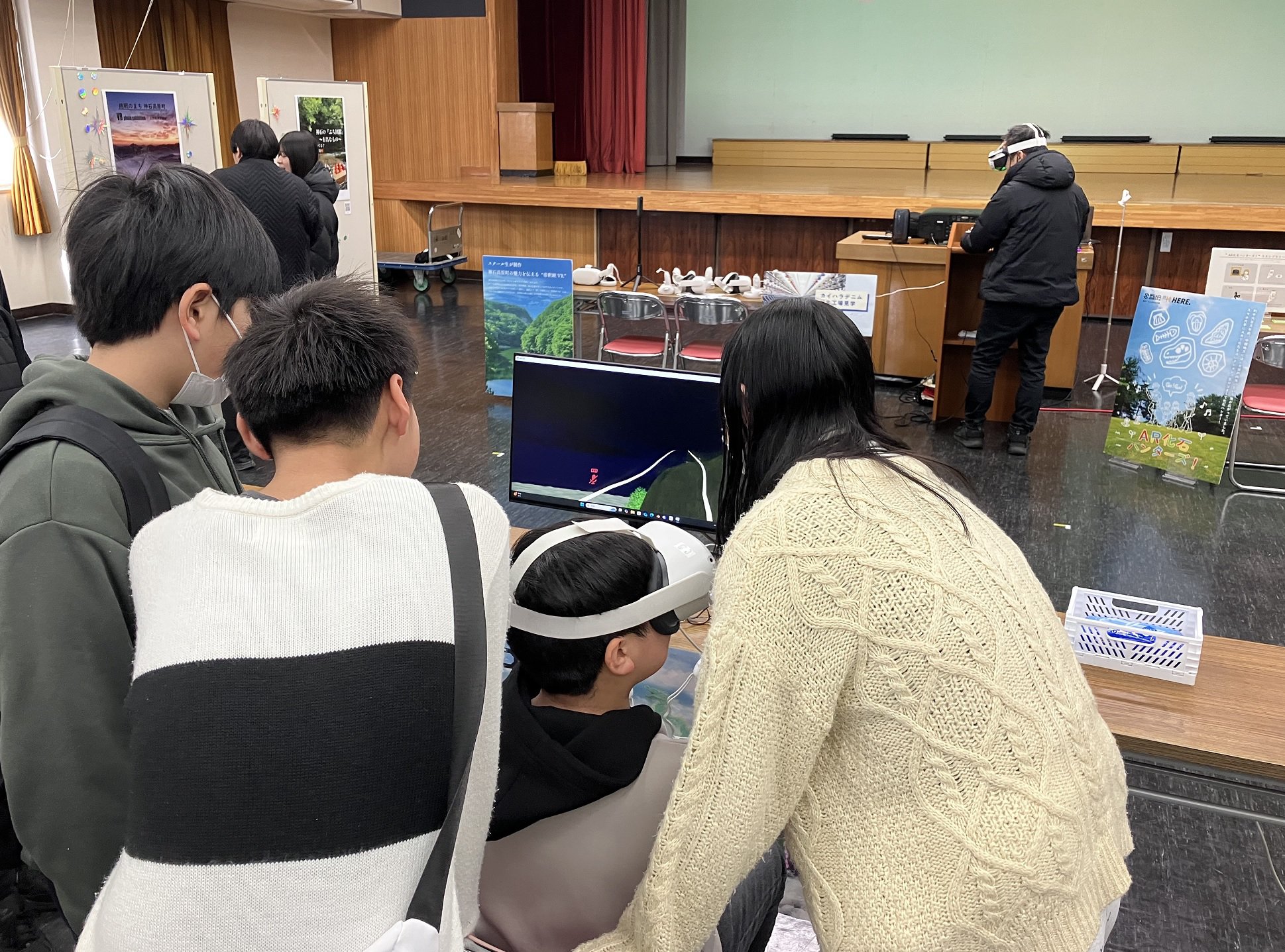 神石高原XRスクールでは、成果発表会をさんわフリマ会場内で行います。当日は、受講生が授業で学んだVRやAR技術等を活用して、神石高原町をテーマに制作した作品の展示と発表を行います。VRやARの体験もできますので、ぜひお越しください。