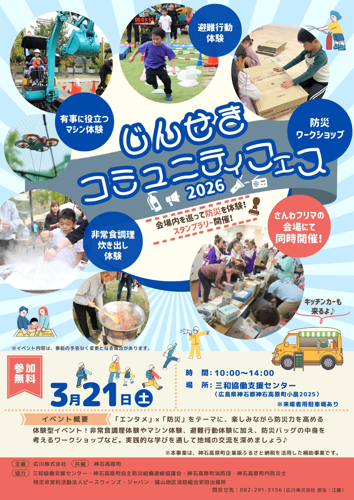 本イベントは、楽しみながら防災力を高める体験型イベントです。町内の協力団体等により、あらゆる世代の方にご参加いただける内容を企画しています。地域の交流を深め、災害への「備え」につながればと考えています。