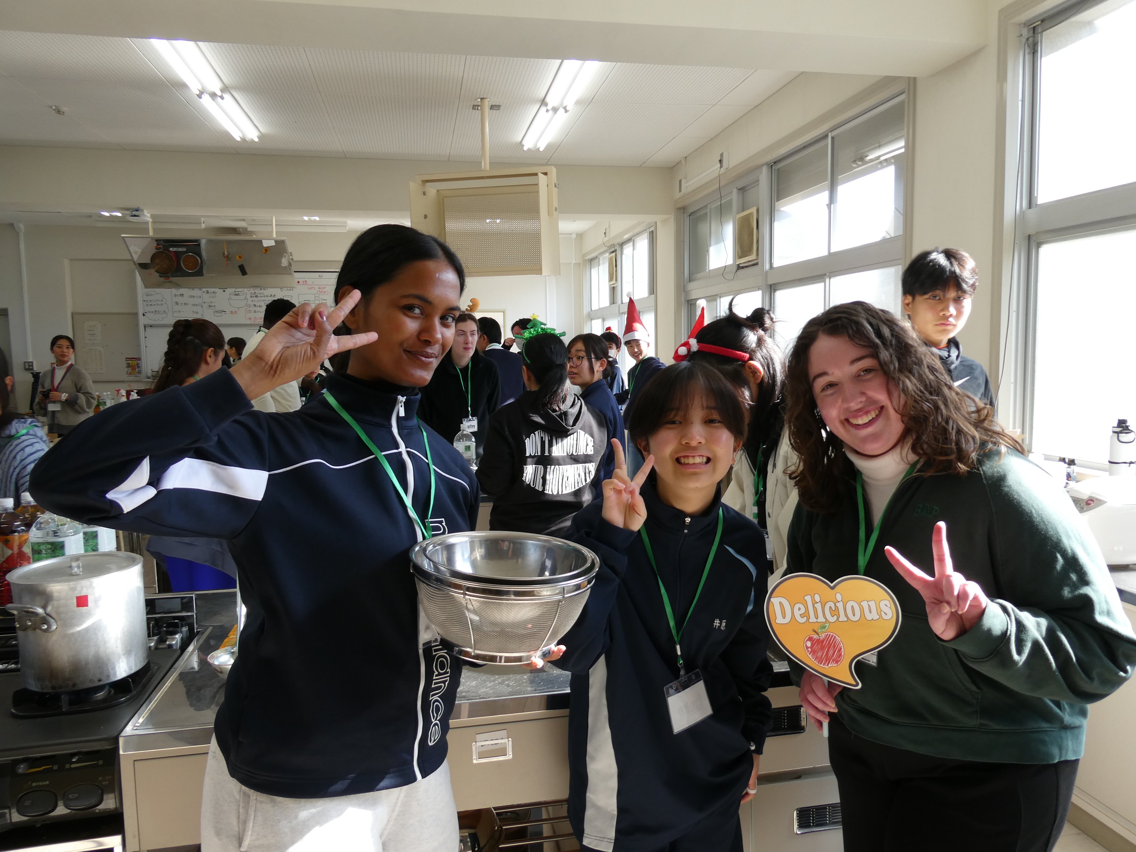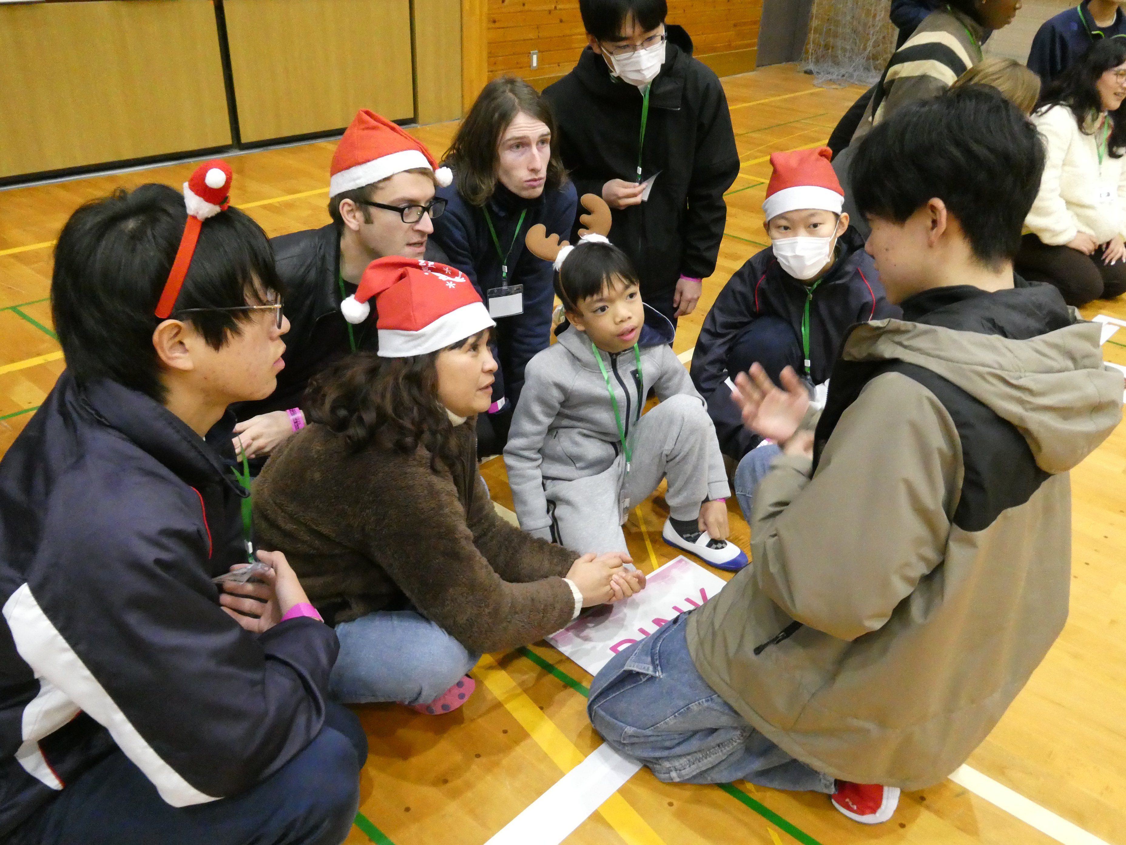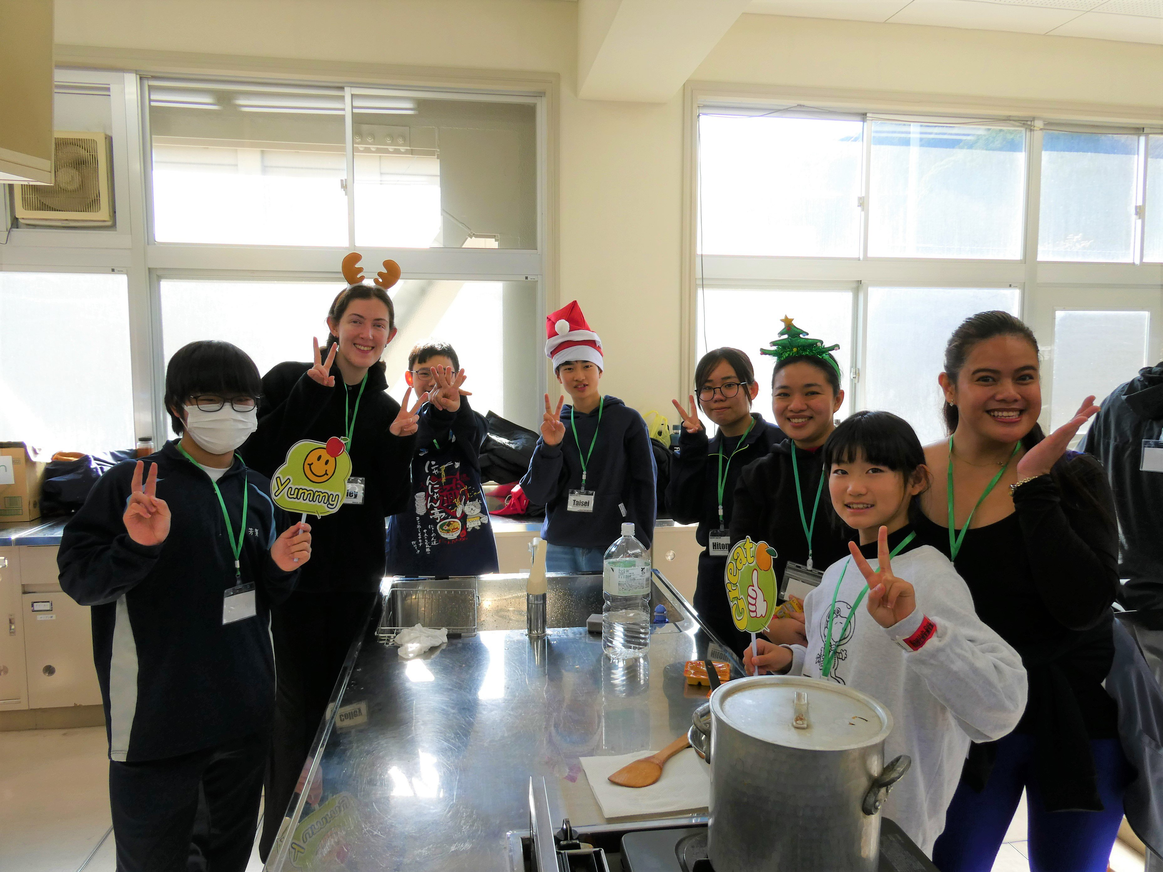 12/13(土)油木高等学校へ小中学生と、油木高校生28名と、8ヵ国の海外出身ALT (外国人指導助手)21名が集まりました。このイベントは小中高校生とALTが1日「英語を使って遊ぶ」を体験するものです。伝言ゲームやカレー作りなど、初めて出会った人との交流の感想をご覧ください。