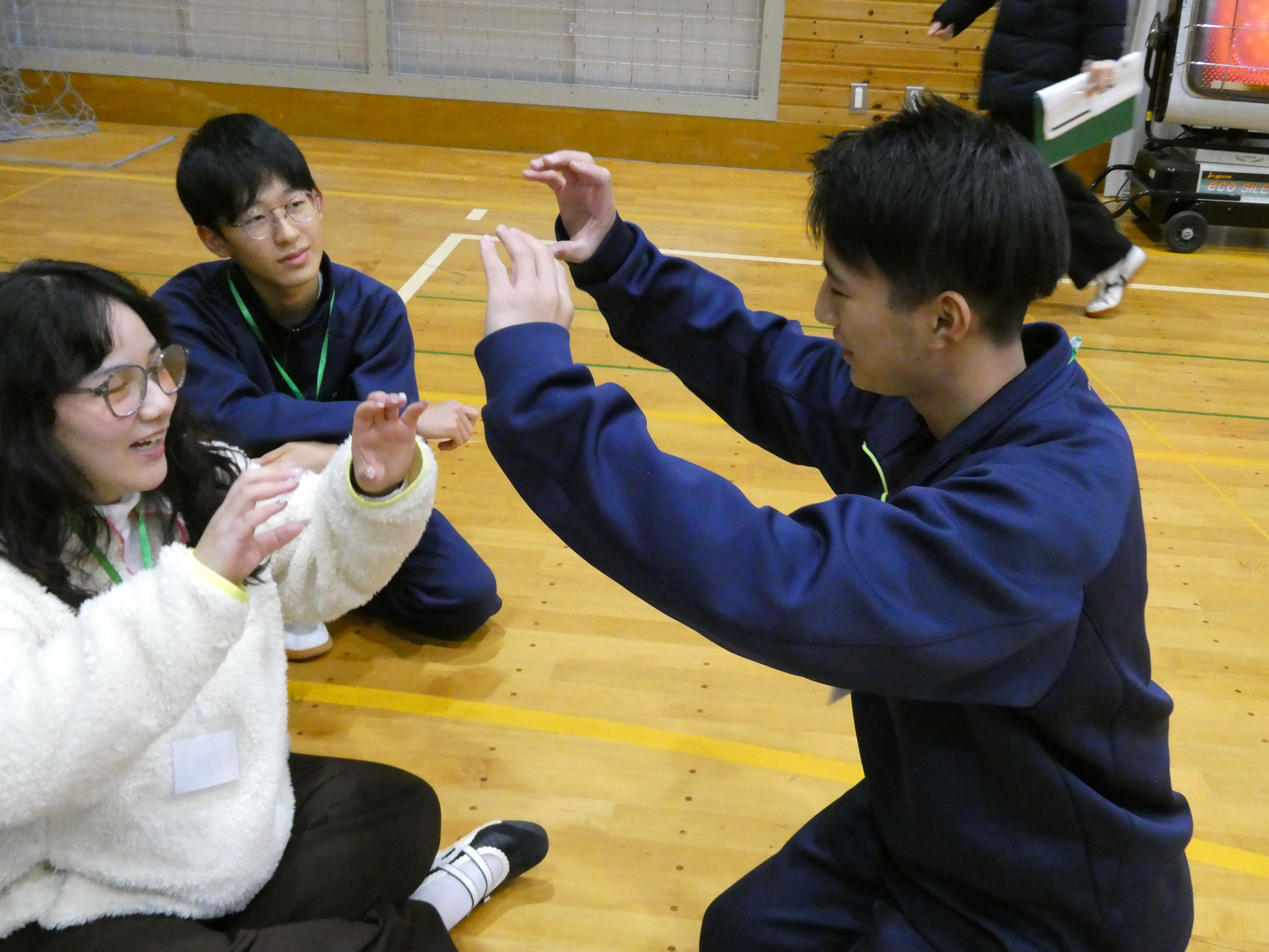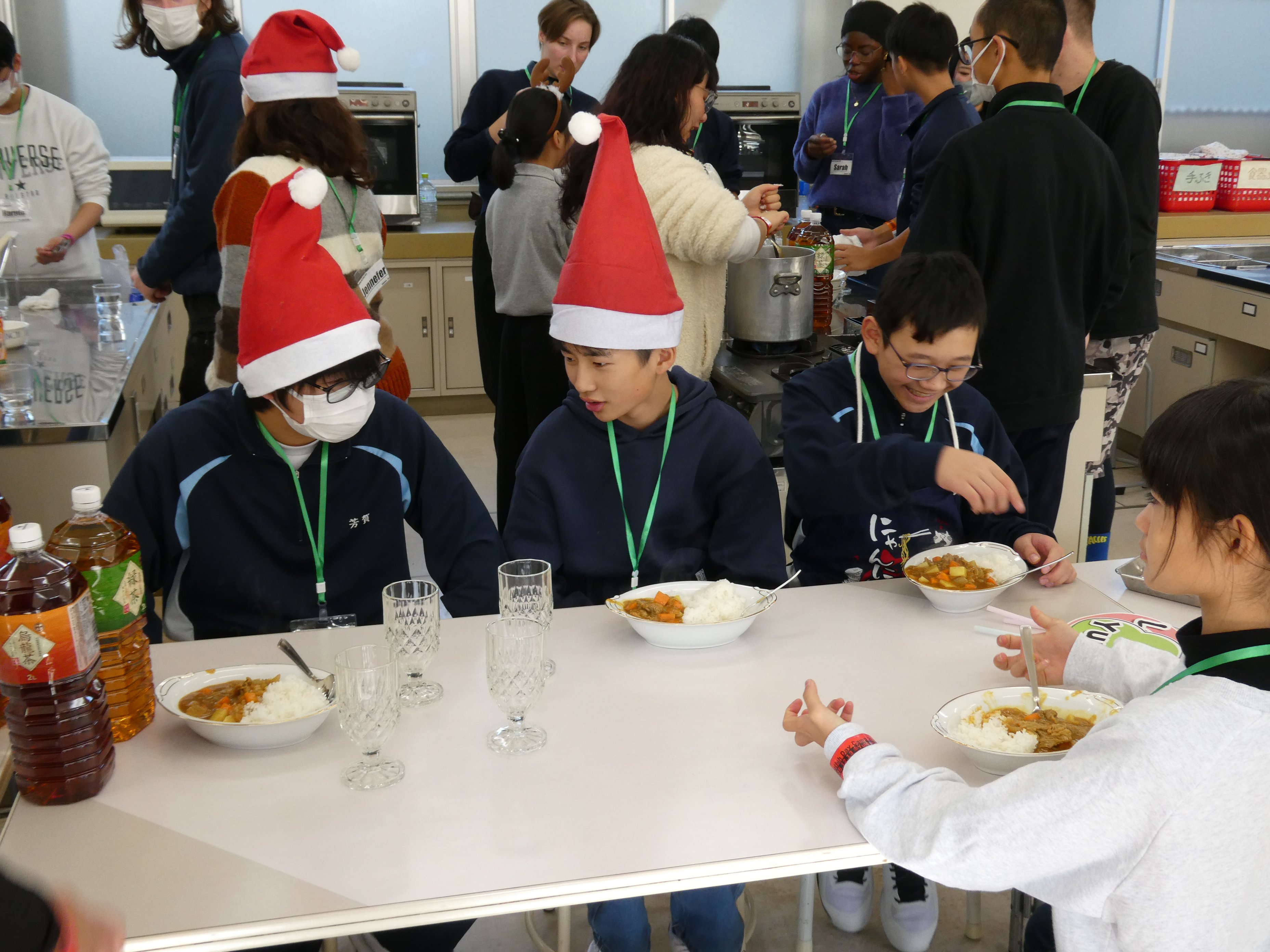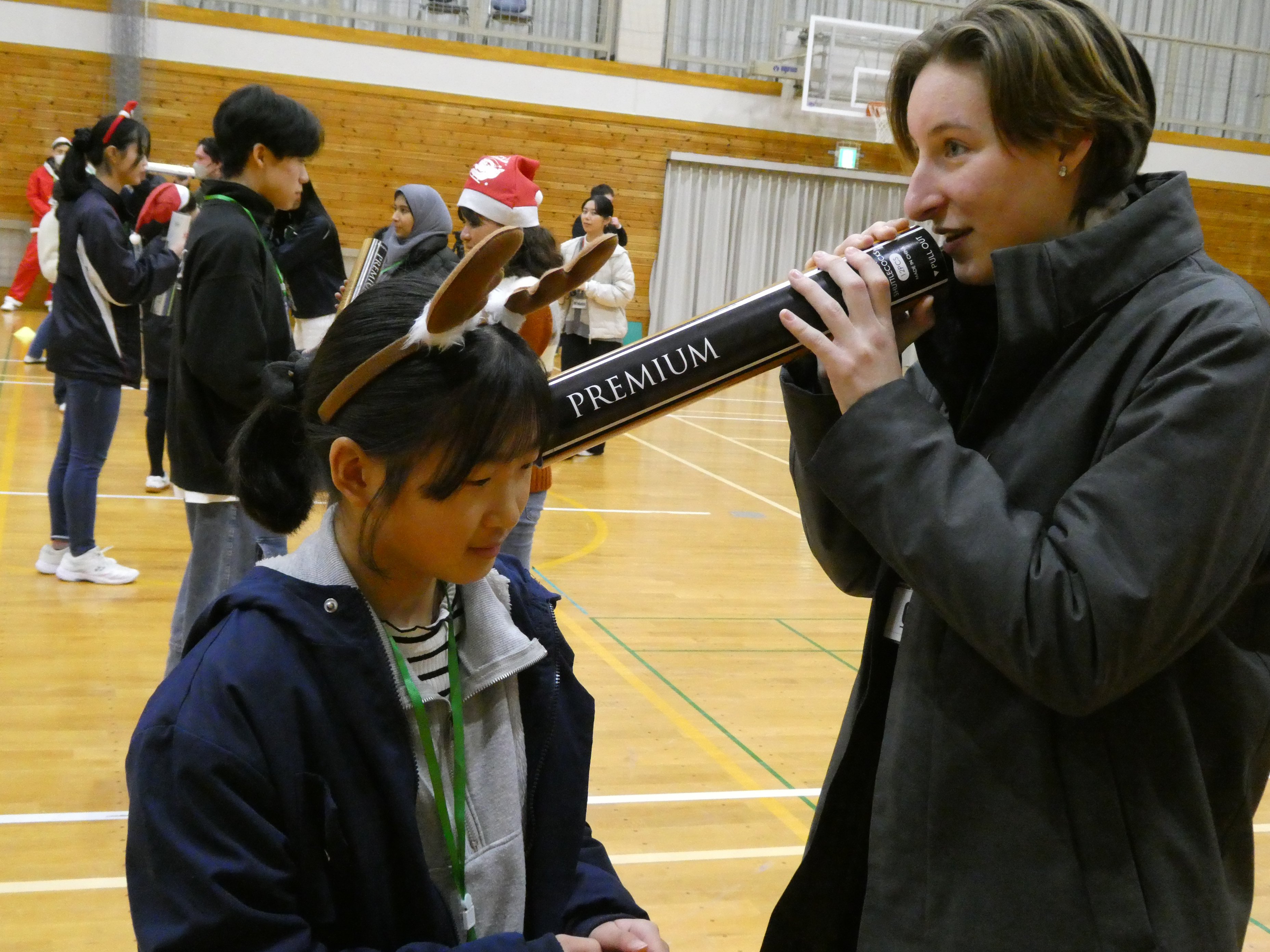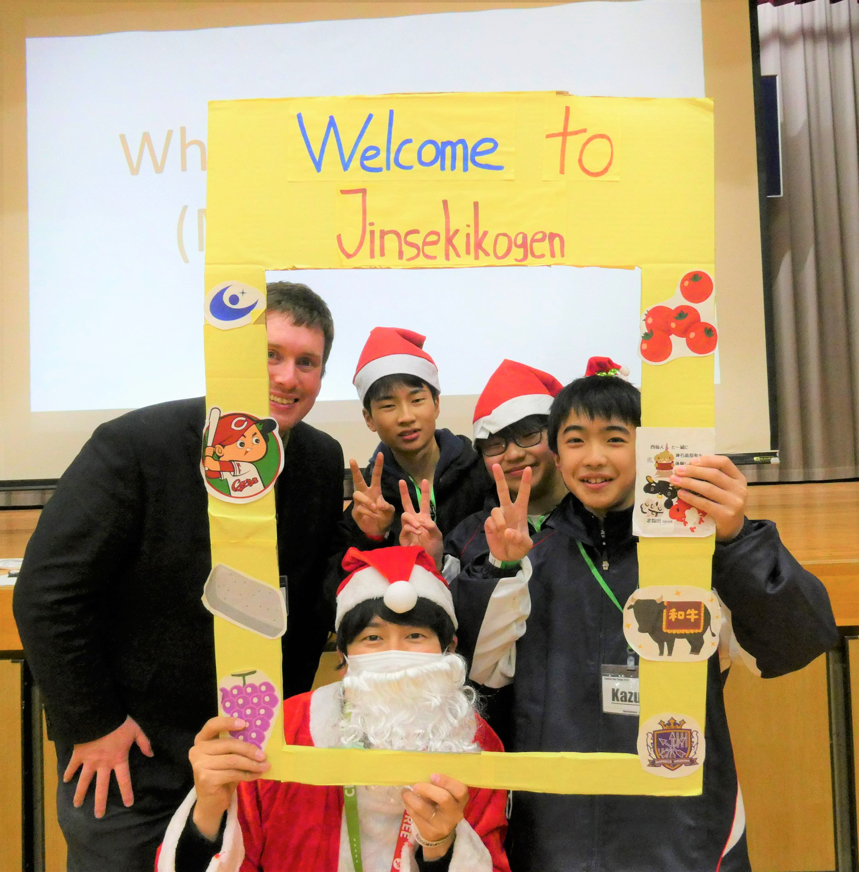 12/13(土)油木高等学校へ小中学生と、油木高校生28名と、8ヵ国の海外出身ALT (外国人指導助手)21名が集まりました。このイベントは小中高校生とALTが1日「英語を使って遊ぶ」を体験するものです。伝言ゲームやカレー作りなど、初めて出会った人との交流の感想をご覧ください。